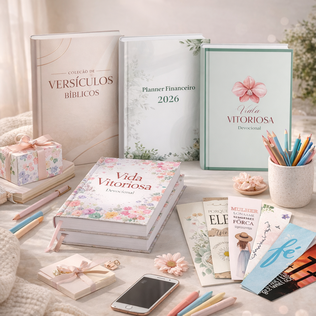 O Vida Vitoriosa é um kit espiritual completo para mulheres que desejam viver um ano alinhado com Deus, cuidando da fé, da mente, dos sonhos e da rotina.